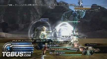 前作是三人一队,本作是2人+1怪为一队,每一个阵型中角色们都会承担不同的职业,除了怪物有固定职业外,角色共有6个职业可供选择,初始游戏时塞拉和诺埃尔只有3个(ATTACKER、BLASTER、DEFENDER),通过升级水晶盘来开启。战斗中按l1可以切换阵型,图中ATB槽上方显示的就是当前阵型名称。