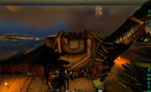 这时你会看见雷龙的身上面有两个条,一个条是紫色代表的是昏迷度,一条黄色的代表是驯服度。接下来就可以按f打开龙的背包往里放食物食草的放果子、而食肉的就放生肉。在这里需要注意一个问题那就是千万不要放白色的果子不然会让龙清醒的。
