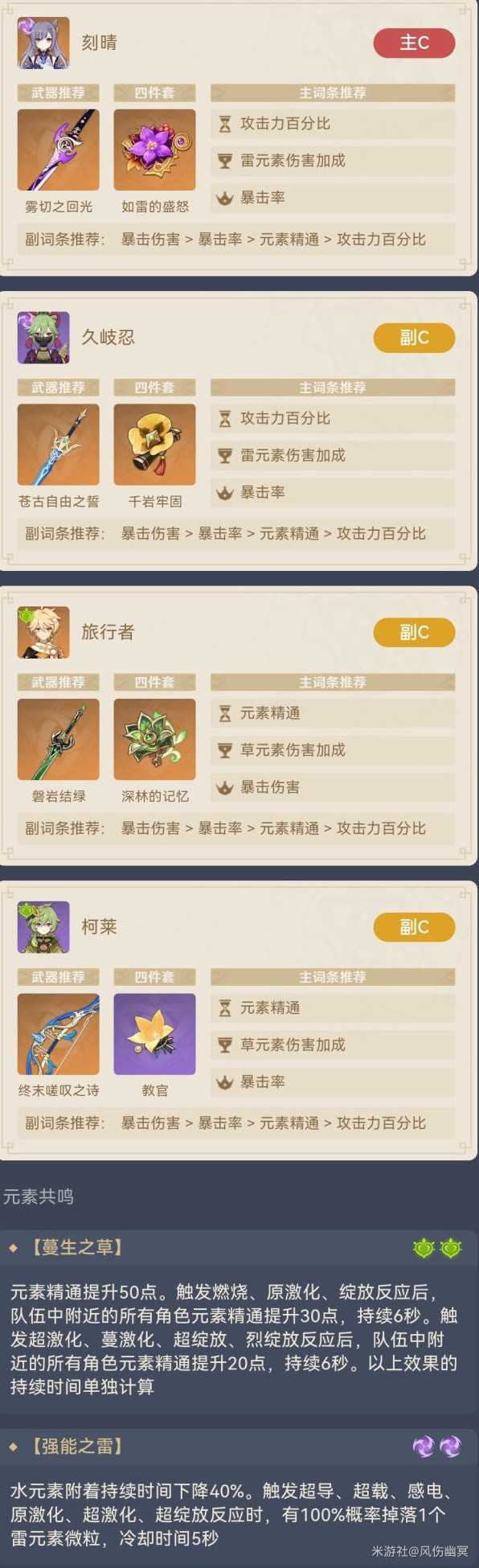 《原神》刻晴的数值虽然到后期之后相对疲软,但仍有许多阵容搭配后可以让刻晴的强度提高很多,下面请看玩家“风伤幽冥”带来的《原神》刻晴超激化流阵容推荐,一起看看吧。
