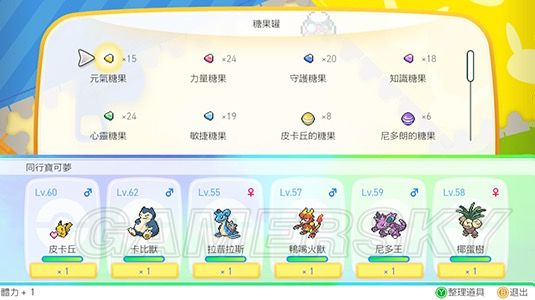 对宝可梦使用「糖果」,宝可梦的能力便会因应「糖果」的种类而得到强化。
