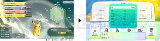 使用「敏捷糖果」后,皮卡丘的「速度」提升了