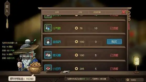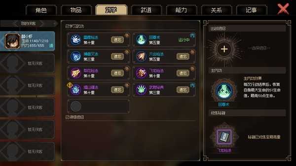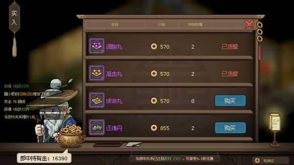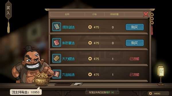 有资金了就好办了,直接去药店和酒馆,把回蓝的药和菜包圆了,武馆里再买一门枪法一门棍法,撤退。