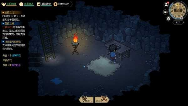 出门随便选,拿回血内功,睡三个时辰出门,触发猎户和寨子剧情,直接送猎户碗,触发修弓。捡走灵芝吃了,接着直奔村子,卖肉买狗肉买一瓶地瓜烧,去找铁匠修弓。然后去十里坡触发说书的拿了一点臂力。接着回头找猎户了解杨家后人剧情。之后再去找捕快给她一块野猪肉回满体力,打三次拿饰品。