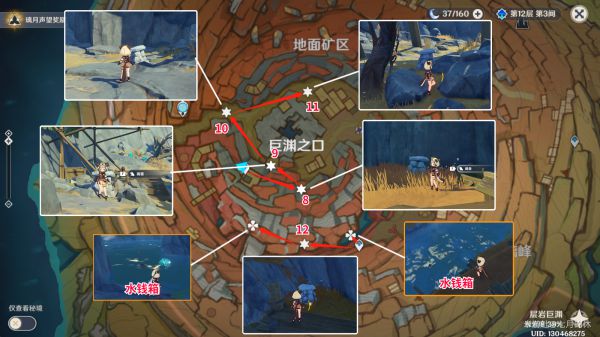 12号:在传送点往左边走,踩风场石飞上去,视线往右边拉就能看到。