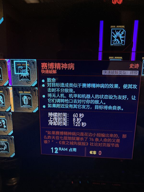 《赛博朋克2077》黑客流玩法在中期就可以成型,随着进度及装备的增加,到了后期也可通过更换品质、属性更好的装备来强化流派。下面请看由“kenidcn”带来的《赛博朋克2077》黑客流后期插件选择推荐,一起来看看吧。