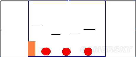 之所以说树枝不是安全点,是因为昨天我有两次被橙线路径打过。一个是从屏幕外往里飞砸到了我,另一个是从里面往外飞砸到了我,所以这个大概应该是做左下角最安全