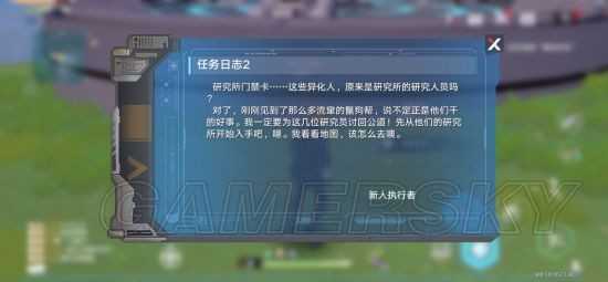 击杀精英怪后可以看到任务日志4,里面讲述了三个研究员变成异化人的原因。