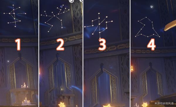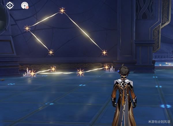 3.来到这里,先击碎前面的水琥珀,然后门右边就出现完成的星图了,如图2。