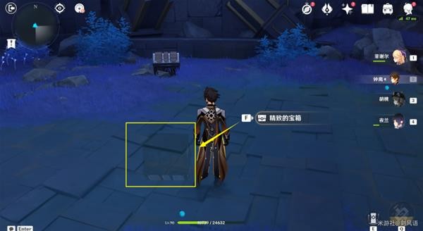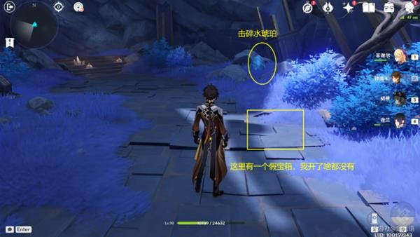6.来到这里,出现一个假的精致宝箱,旁边有一个水琥珀,击碎琥珀,地下水面上看到一个精致的宝箱倒影,只有倒影里的宝箱是真的,其他都是假的。