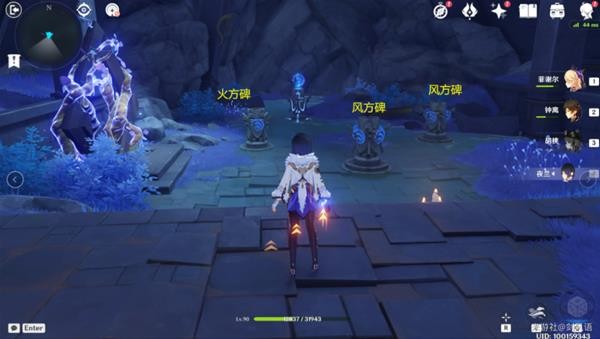 8.来到这里,看到4个水元素方碑,而真的只有一个,其他3个都是别的元素方碑,如下图,1个火/2个风,如果没有带这几个元素的角色,可以到旁边虚空之门切换,全部点亮即可获得一个精致的宝箱。