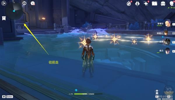 9.在水元素方碑这里,开启元素视野,又发现一面假墙,继续前进。