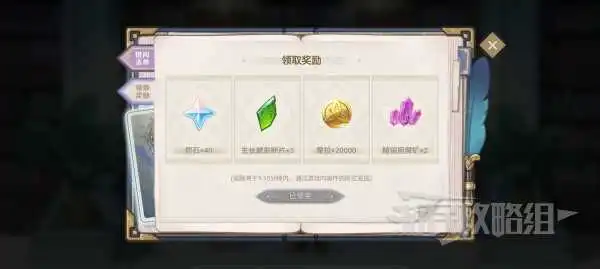 - 游戏奖励:40原石、生长碧翡断片×3、摩拉×20000、精锻用魔矿×2