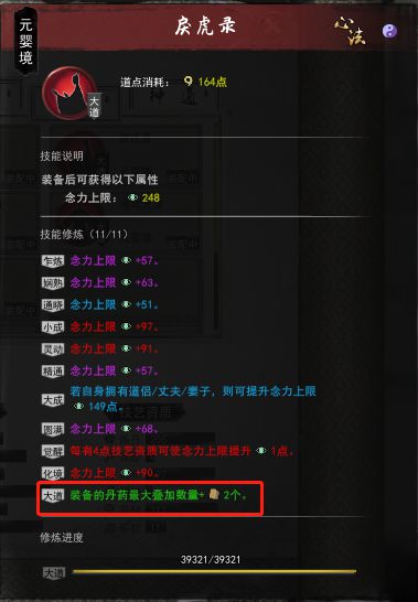 心法标注的红色边框是炼丹的时候可以多加入几种药材增加一品概率的。