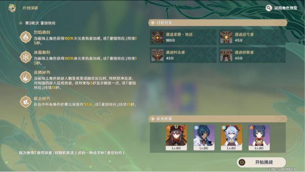 在「片剂深研」的挑战关卡中,旅行者需要连续进行3轮挑战。每轮挑战需要在时限内击败不断出现的敌人以获得评分,战斗轮次之间可以更改队伍配置,更换上阵角色,以应对不同的敌人。挑战结束后,将依据试验评分获得相应级别的试验纹章。