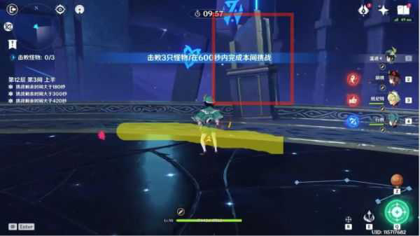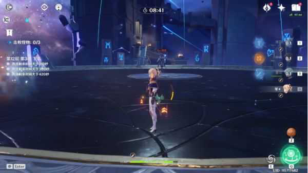 开局到达这个位置后,直接开启温迪大招。并向前冲刺一步来保证深渊水法的位置不会太靠后。(有人可能会问我温迪没大怎么办?不要急这个问题我会在12-2部分提及并解释)