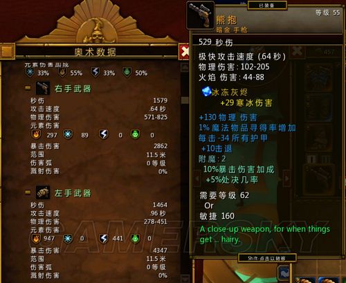 3.关于装备属性 当然是什么好用什么 个人觉得+属性点的装备都非常好 我37级的暗金衣服和头 用到现在还换不掉 属性加太多了 真心舍不得换... 还有就是全抗装备 原因前面说过 基本上现在能对我造成伤害的 都是魔法类的攻击 所以全抗是越高越好 护甲什么的 都是浮云... 回蓝也是非常NB的属性 我50级左右的一段时间里蓝一直非常紧 放不了几个技能就空蓝 非常痛苦 所以那时候加了不少的集中 后面才发现回蓝和集中没什么关系 基础回蓝是个固定值 总MANA值的4% 所以用装备把MANA堆上去也是OK的。 还有就是武器的攻击回蓝属性 还有攻击回蓝的宝石 在中期非常珍贵 技能把蓝放空 双枪平射回蓝速度那是非常快的。 装备和宝石的回蓝 我现在回蓝12MANA/S 基础4% 还有卷轴学的魔法“集中”4MANA/S,基本上已经很爽了 蓝瓶也就打BOSS的时候喝那么1、2个 平时技能随意放 蓝都OK。