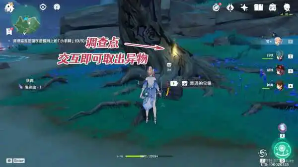 将异常点全部清除后就会出现一个调查点和一个宝箱,对调查点进行调查即可清理掉盗宝团留下的手脚。