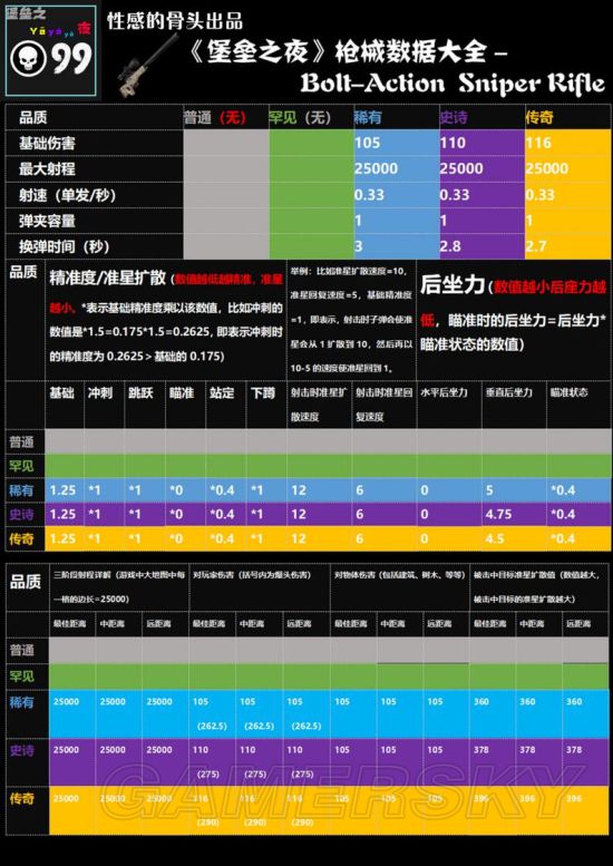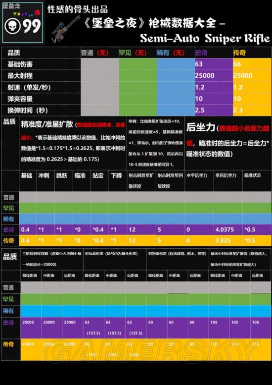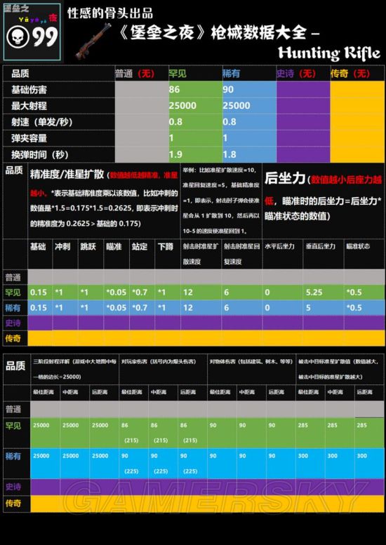 《堡垒之夜》中有各种类的枪械,散弹枪和狙击枪等。每把武器都有着各自的特点,伤害和射程也都有所区别。大家请看下面的《堡垒之夜》各种类枪械详细数据一览,包含枪械伤害及射程等数据,希望对大家有用。