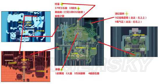 图中冰雪地图的橙色线为点燃篝火(传火)打16号BOSS的路线