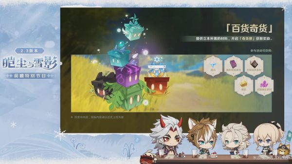 《原神》2.3版本即将到来,不少玩家想要了解2.3版本中增加了那些新的角色和活动内容,下面请看“雨沫Yimis”带来的《原神》2.3版本更新内容前瞻,希望能够帮助大家。