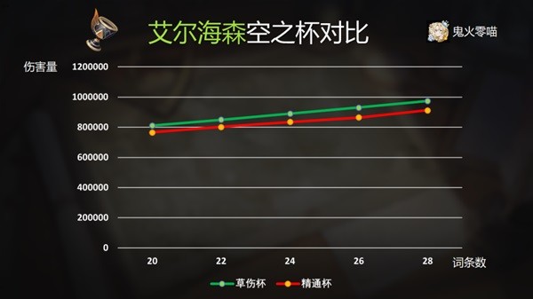 从收益折线可以看出,同词条数情况下精通杯收益被草伤杯完全压制。更何况草伤杯可以刷出精通副词条,而精通杯完全不可能,只有领先至少4个双暴词条的情况下精通杯才有优势(1词条指一次强化成功的数值)。考虑到组队中也能获得大量的精通增益,推荐优先选择草伤杯。