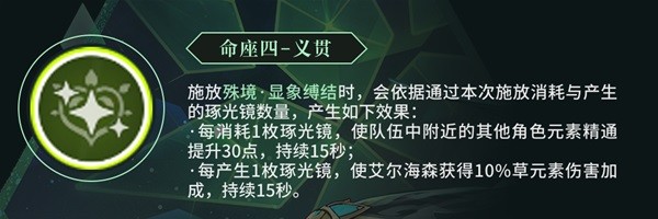 拥有「琢光镜」时,「艾尔海森」获得不会被附魔覆盖的草元素转化;