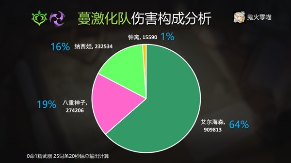 从伤害分析图可知超绽放是队伍的输出核心,优先提升挂雷角色。