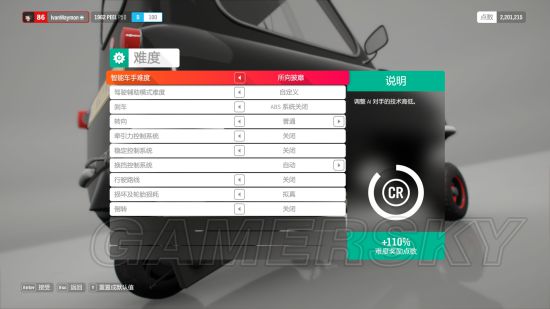 众所周知难度越高奖励越多,最高难度所向披靡,AI会拿出和你差不多的车,但是AI的技术就好像是在地图上有人牵引一样,尤其是各种弯路刷刷刷,我是跑不过的。 这个时候就得需要车辆调校了,下面开始讲方法。
