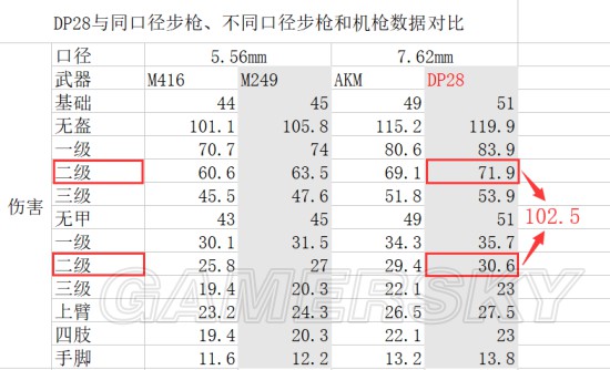 先让我们仔细看完上面的伤害横向对比图,啊哈也是惊人的发现无论是与一哥M416、新版AKM还是同为机枪的M249相比,伤害都是冠绝绝地求生的。当然每把枪支都有其鲜明的特点,虽然空头机枪M249伤害无法与DP28相提并论,但是其射速还是稍稍占优,而M416在配件支持上更具优势,而AK则属性更综合一点,所以各有各的优点中为何要选择DP28呢?