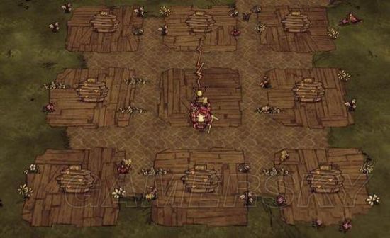 材料:足够的木头数枝草燧石,步行手杖有最好(加快探图),回血的。