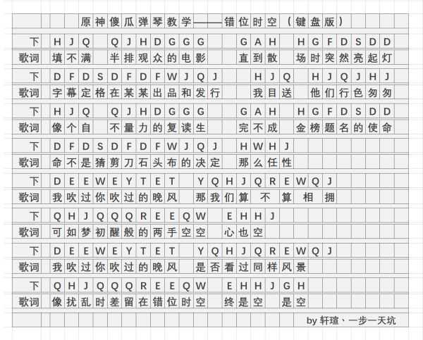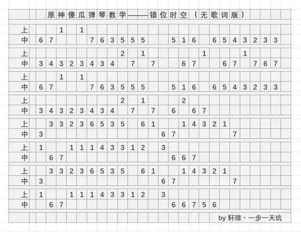 《原神》1.4版本活动风花节可以兑换一个用于演奏的道具,很多玩家想要一些音乐的谱子,下面请看“轩瑄丶一步一天坑”带来的《原神》错位时空乐谱分享,希望能够帮助大家。