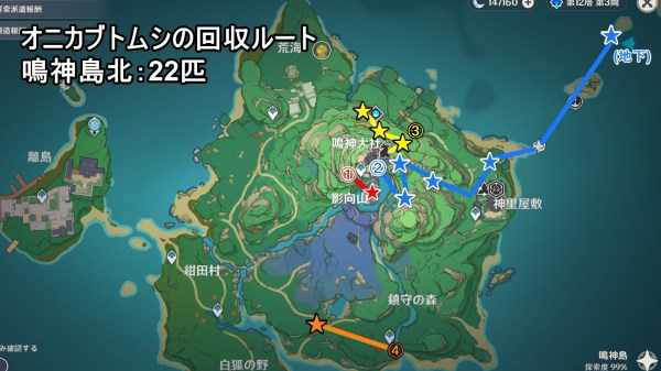※本文仅介绍比较容易获得的59个鬼兜虫的收集路线(地图中总共79个),培养鹿野院平藏总共需要168个鬼兜虫,可以分3次收集。