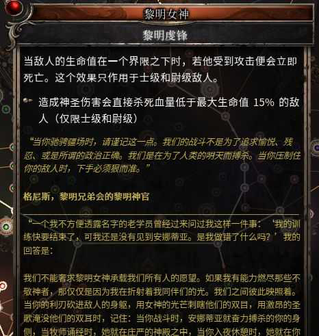 1.黎明壁垒:法师必带技能,保命站撸神器,配合天赋有神圣斩杀效果。