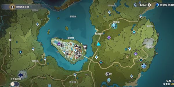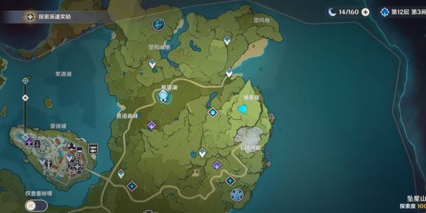落落莓可在望风山地附近找到,位置如图,需穿过一个丘丘人聚集地
