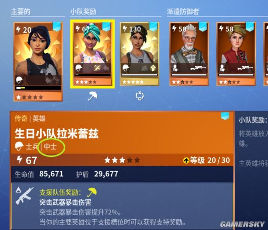 中间放“中士”,我这个图片是蛋糕女,可以替换成“琼斯士兵”,效果都是增加突击步枪暴击伤害,右卡随意。