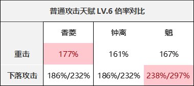 PS:其中跳跃能力不会随着天赋提高而跳的更高,普通攻击/重击/下落攻击的提升幅度会随着元素爆发天赋等级的提高而提高,每秒流失的血量随着等级的提升而减少,在7级时达到最低:每秒流失当前2%的生命值。