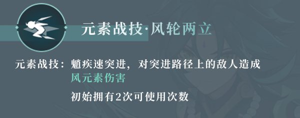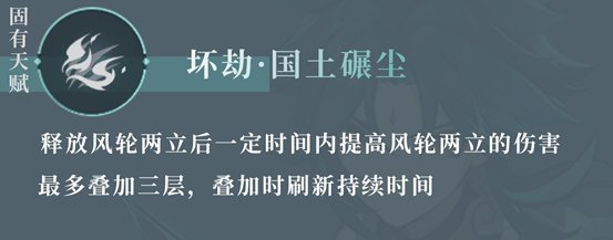 提高释放风轮两立后的7S内再次释放的风轮两立15%伤害,重复触发时叠加层数并刷新持续时间,最多叠加三层,即45%。