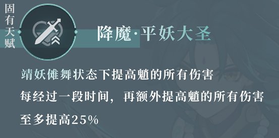 魈平均能享受到的全伤害加成约为12.5%。但由于靖妖傩舞状态下魈的普通攻击/重击/下落攻击伤害已经有了巨大提高,若携带了风元素伤害的空之杯,则该天赋对此这些伤害的实际提升较小,不过对「元素战技·风轮两立」的伤害提升较为明显。