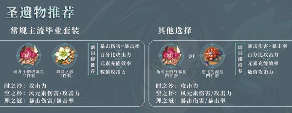 ◎如果旅行者的暴击率无论怎么样堆叠都低于40%,可以考虑携带其他选择中的圣遗物进行普攻穿插重击的输出方式(这种输出方式对群效率较低)