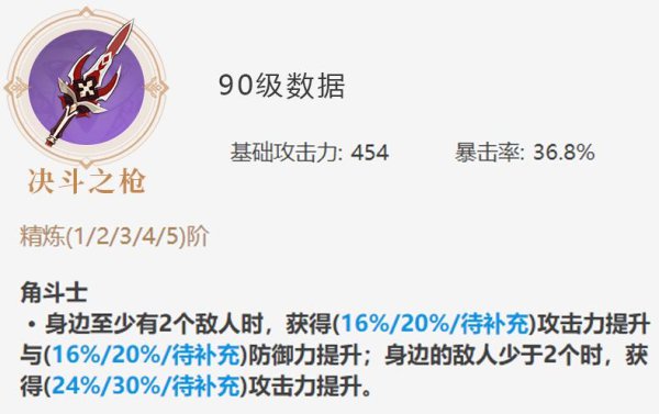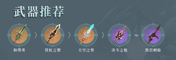 风元素长枪输出型角色,元素战技倍率较高且拥有多层充能,元素爆发大幅增加普通攻击/重击/下落攻击的伤害;依赖元素爆发进行输出,不具备后台输出能力。突破增加暴击率,为武器和圣遗物的选择提供了更多空间。