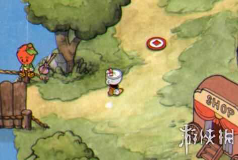 进入游戏后会先观看一大段动画和通过基础教学关卡。完成这部分内容之后离开出生的房间来到屋外向右走,在土地中央见到一个红白相间的圆形靶状物,靠近后按A进入关卡:FOREST FOLLIES。