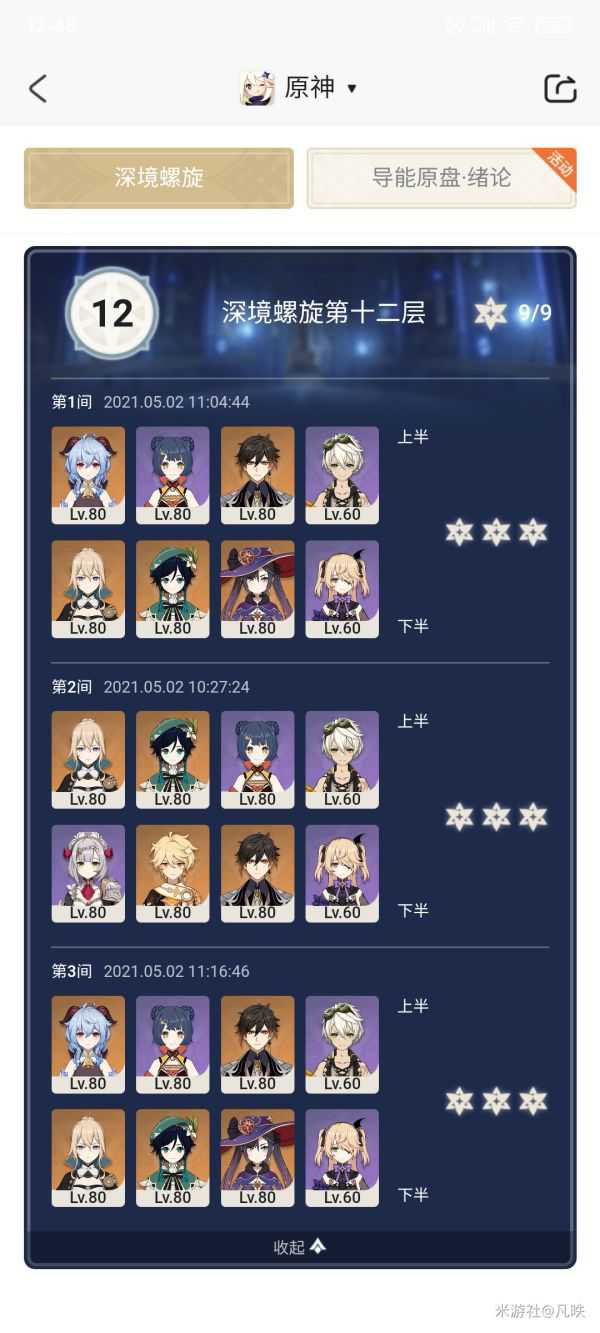 试验了好几个队伍也终于打满了12层,这回基本是得分了两次来打满星,至少以我的阵容跟练度来说只能分两次来。