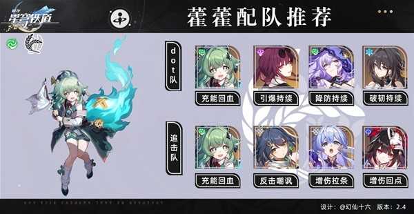 《崩坏星穹铁道》中藿藿是一名丰饶命途的治疗型角色,现已在2.4版本上半卡池进行复刻,那么藿藿的技能加点与出装配队都是怎样的呢?下面请看由“幻仙十六”带来的《崩坏星穹铁道》2.4藿藿培养一图流,希望能够帮助到大家。