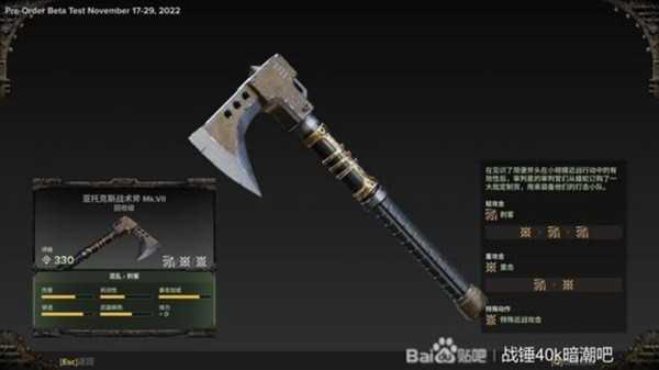 《战锤40K暗潮》中斧头类武器有很多,不少玩家想要知道那种斧头更加强力,下面请看“冷月肆拾柒”带来的《战锤40K暗潮》通用斧头强度分析,希望能够帮助大家。