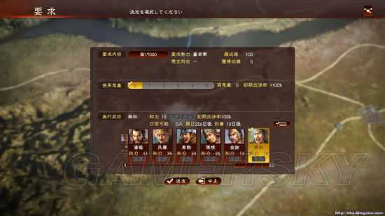 先说为什么你要培养的人有高的交涉特技更好。我们知道,问盟友要东西分两种,一个是要钱,一个是要兵粮。上面之所以强调是要钱,是因为要钱的初始成功率比要粮高很多。